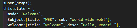우리의 목표에 따르면 WEB을 눌렀을 때 (Subject 컴포넌트의 a태그) Subject 컴포넌트 바깥에 있는 App 컴포넌트의 state가 변경되어야 한다. 하지만 이 과정이 어렵기 때문에 일단 Subject 컴포넌트 만들어둔 것을 풀어서 App에 직접 입력해서 구현해볼 것이다.