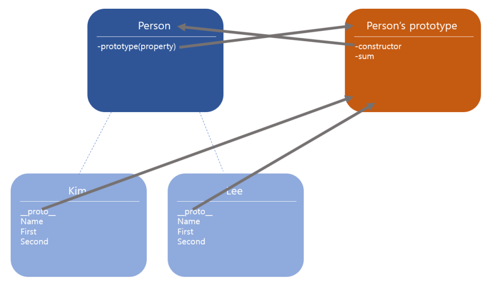 1. Person์ด๋ผ๋ ๊ฐ์ฒด๊ฐ ์๊ธฐ๊ณ ์ด์ ๋ฐ๋ผ Person's prototype์ด๋ผ๋ ๊ฐ์ฒด๋ก ์ถ๊ฐ๋ก ํจ๊ป ์๊ธด๋ค.