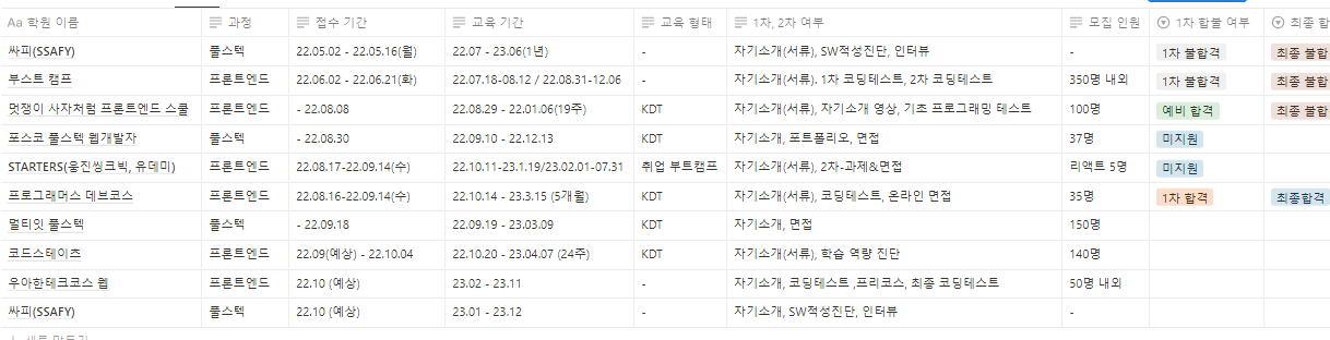 노션에 지원한 교육기관을 정리하고 원하는 곳에 지원하면서 정녕 이 많은 교육기관 중에 내가 갈 곳이 없는 것인가??라는 생각이 듦과 동시에