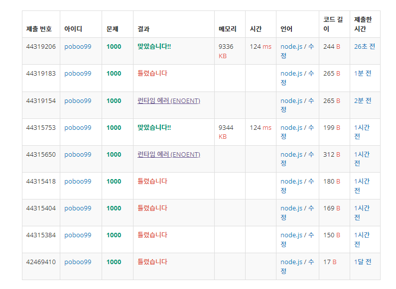 일단 JavaScript로 풀려면 node.js를 선택해야 하고,